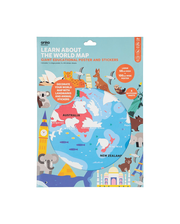 Learn About the World Map: Giant Educational Poster and Stickers