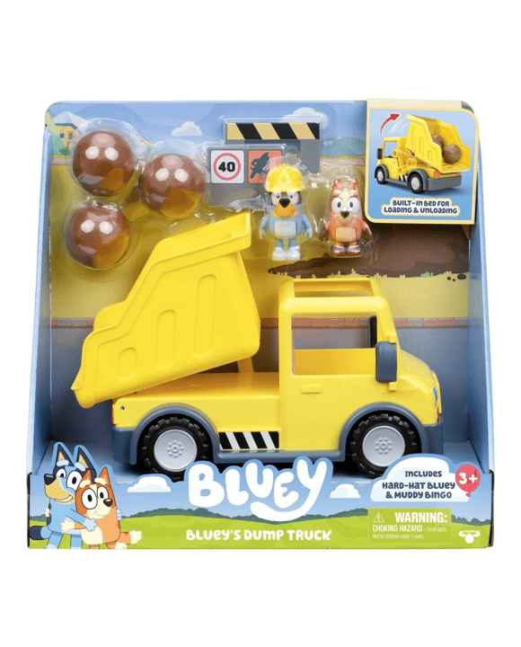 Bluey's Dump Truck With Exclusive Hard-Hat Bluey and Muddy Bingo Figures Set