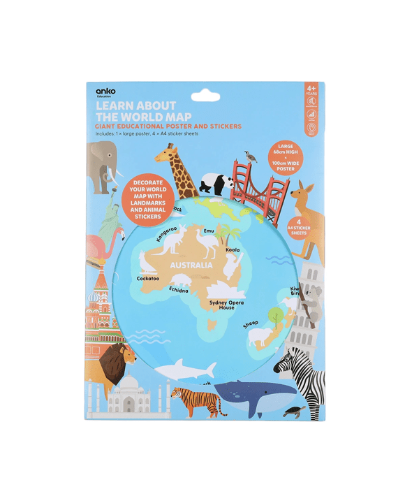 Learn About The World Map Giant Educational Poster and Stickers