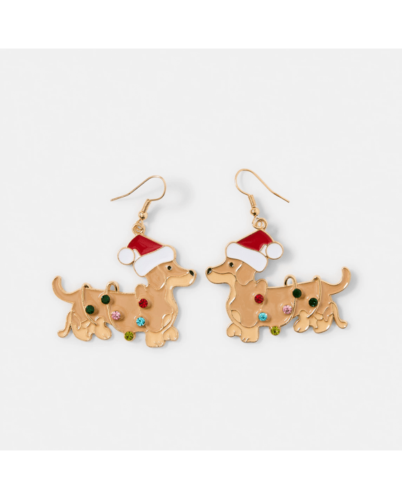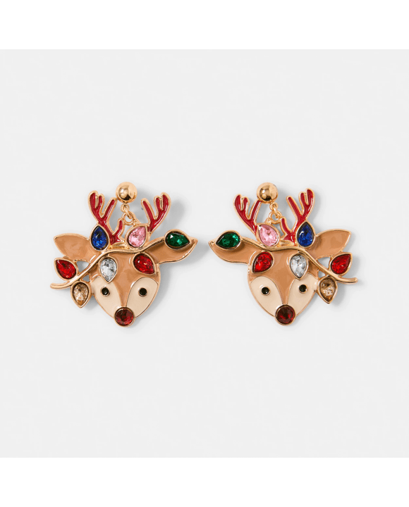 Christmas Reindeer Lights Earrings - Brown and Gold Tone