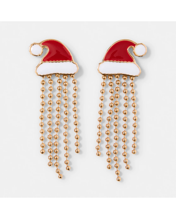 Christmas Santa Hat Earrings - Red, White and Gold Tone