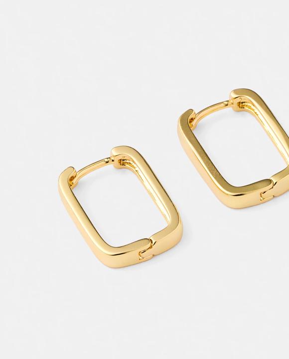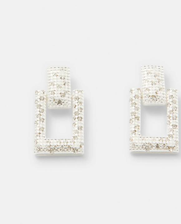 Sterling Silver Huggie Rectangle Stone Drop Earrings