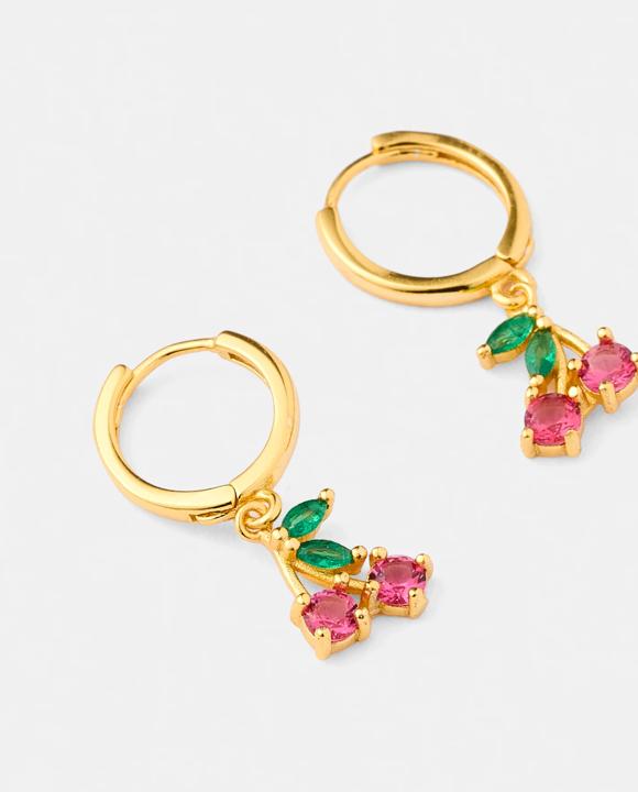 Cubic Zirconia Gold Plated Sterling Silver 925 Cherry Huggie Hoop Earrings