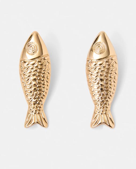 Gold Plated Sterling Silver 925 Fish Huggie Earrings