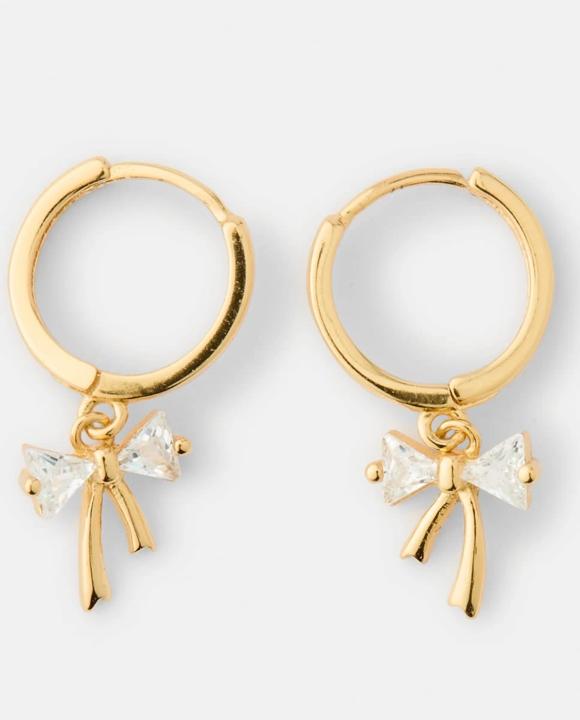 Cubic Zirconia Gold Plated Sterling Silver 925 Bow Hoop Earrings