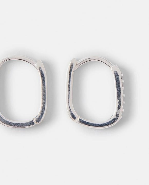 Sterling Silver Square Cubic Zirconia Hoop Earrings