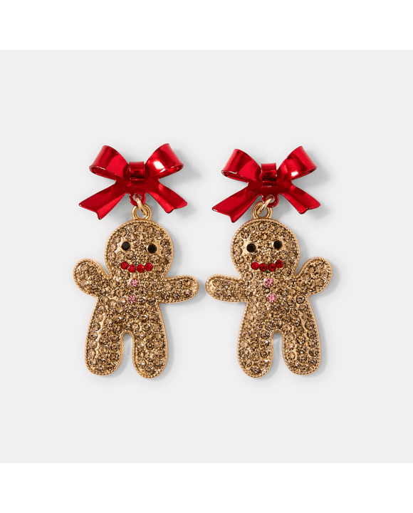 Christmas Gingerbread Earrings - Gold Tone and Red