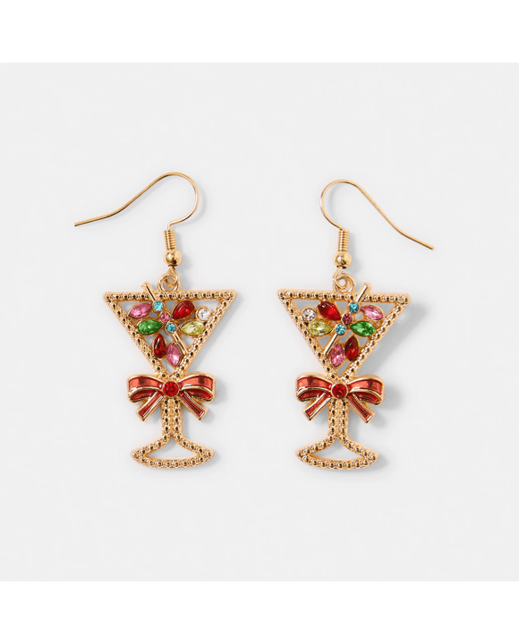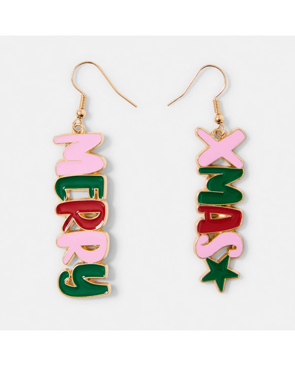 Merry Christmas Earrings - Green, Red, Pink and Gold Tone
