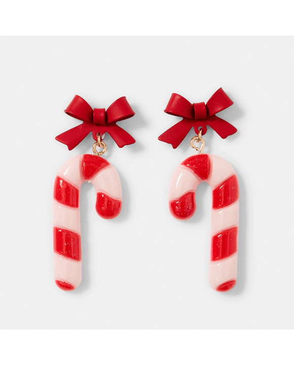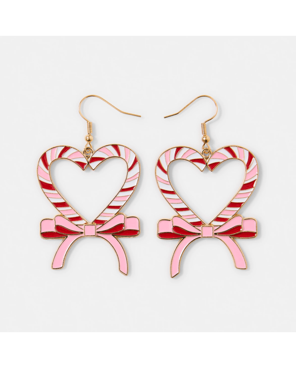 Christmas Heart Candycane Earrings - Pink, Red and Gold Tone