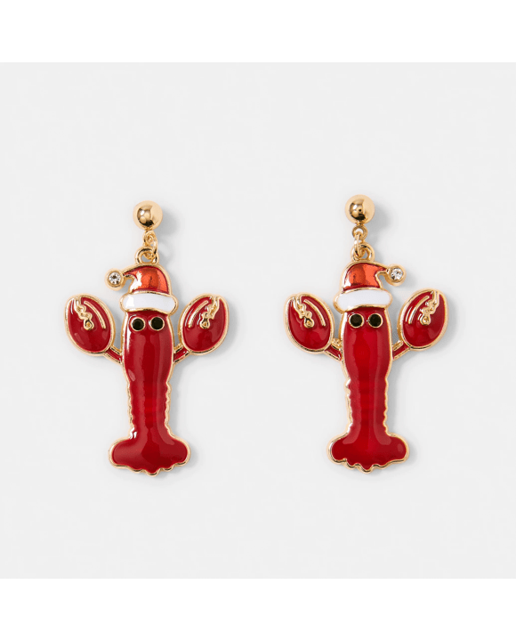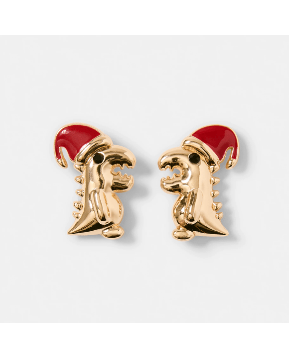 Christmas Dinosaur Earrings - Gold Tone and Red