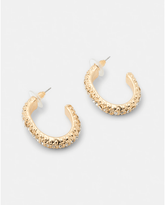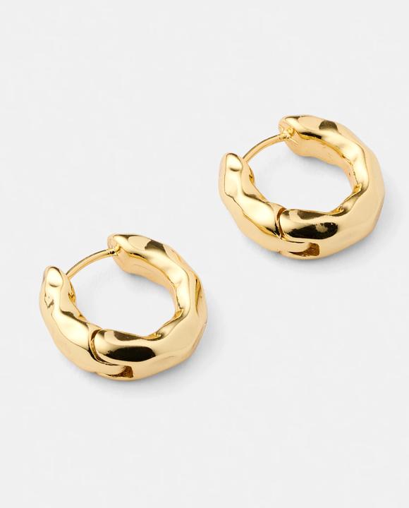 3 Pack Molten Ribbed and Chain Hoop Earrings - Gold Tone
