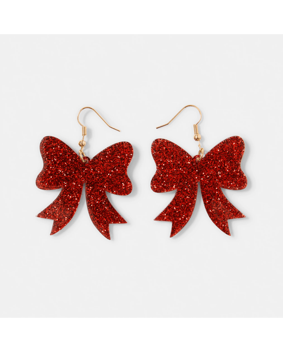 Christmas Acrylic Bow Earrings - Red and Gold Tone