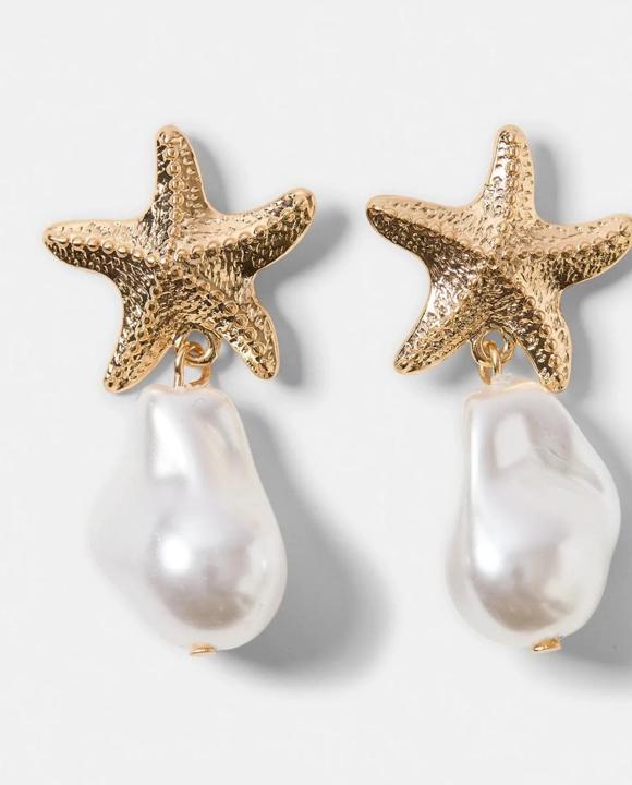 Starfish Faux Pearl Drop Earrings - Gold Tone