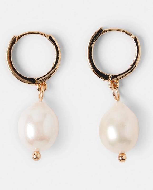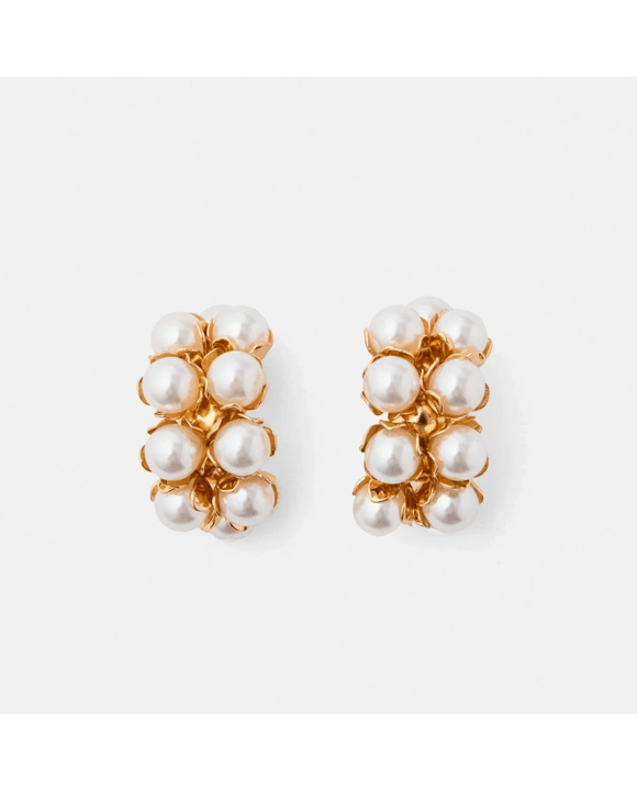 2 Rows Faux Pearl Hoop Earrings - Gold Tone and White