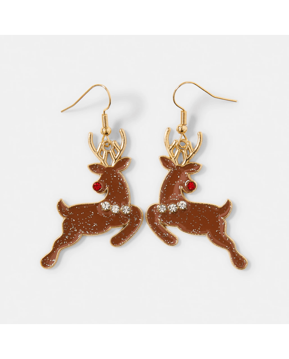 Christmas Reindeer Earrings - Gold Tone, Brown and Red