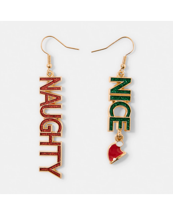 Christmas Naughty Nice Earrings - Green, Red and Gold Tone