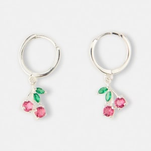 Cubic Zirconia Sterling Silver 925 Cherry Huggie Hoop Earrings
