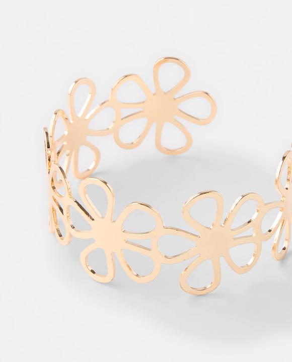 Teardrop Hinged Cuff Bracelet - Gold Tone