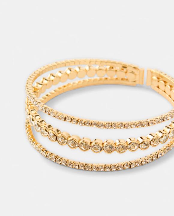 5 Pack Chain and Diamante Bracelet - Gold Tone