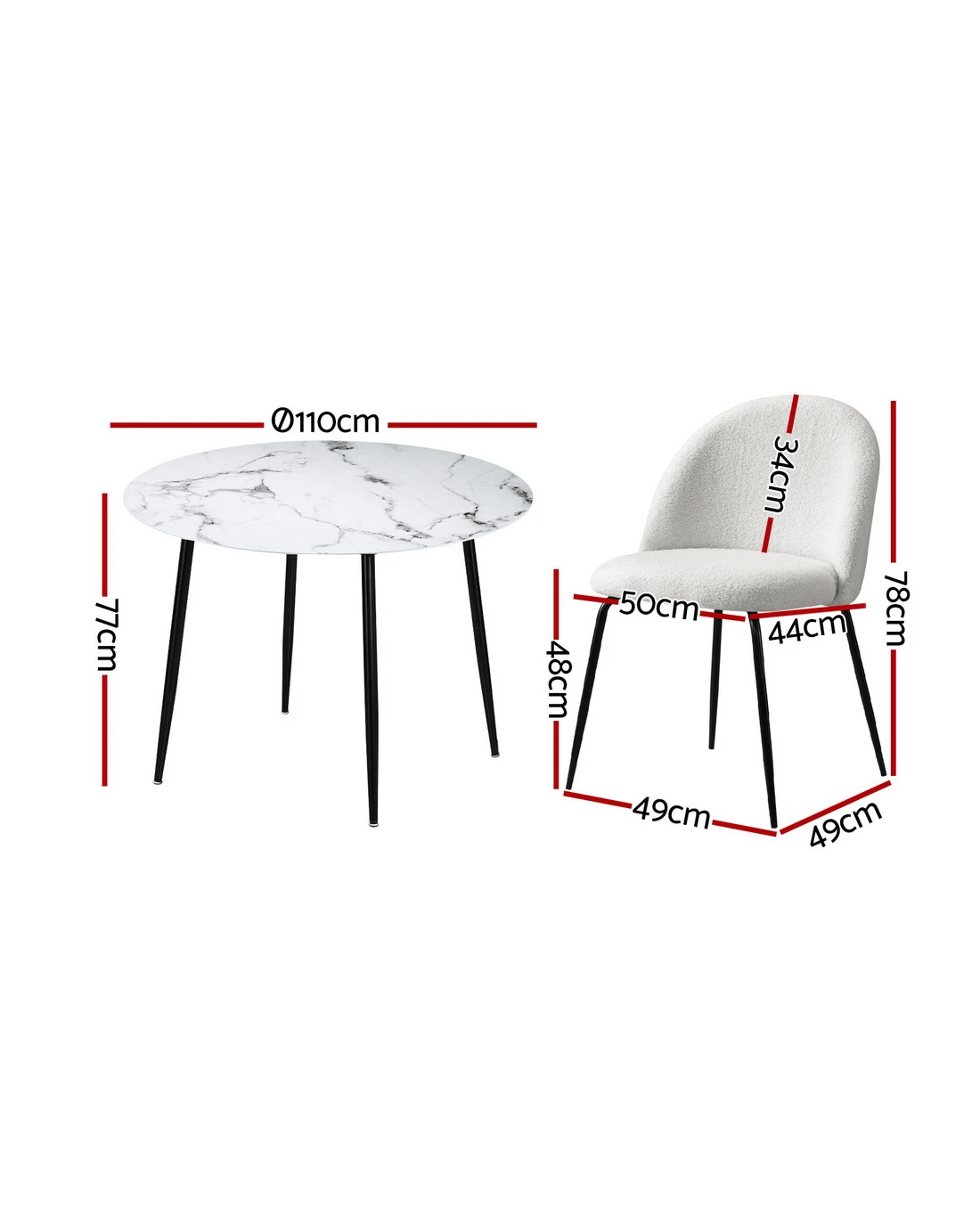 Everyone needs a dining table, and there's no dining table like an Artiss Marble Dining table. The table is an affordable alternative to real marble, made from particle board with a marble finish and sturdy metal legs without sacrificing elegance. Simple and modern, the table instantly makes a statement in your dining room with its minimalist appeal and sleek, sophisticated appearance. The round table features smooth edges for safety while the anti-rust, powder-coated steel legs are sturdy and durable with a weight capacity of up to 90kg. With its practical, industrial-style aesthetic, the dining table will suit most home and décor types and provides plenty of room for a family of four, whether it's dinner time, book club or board game night.