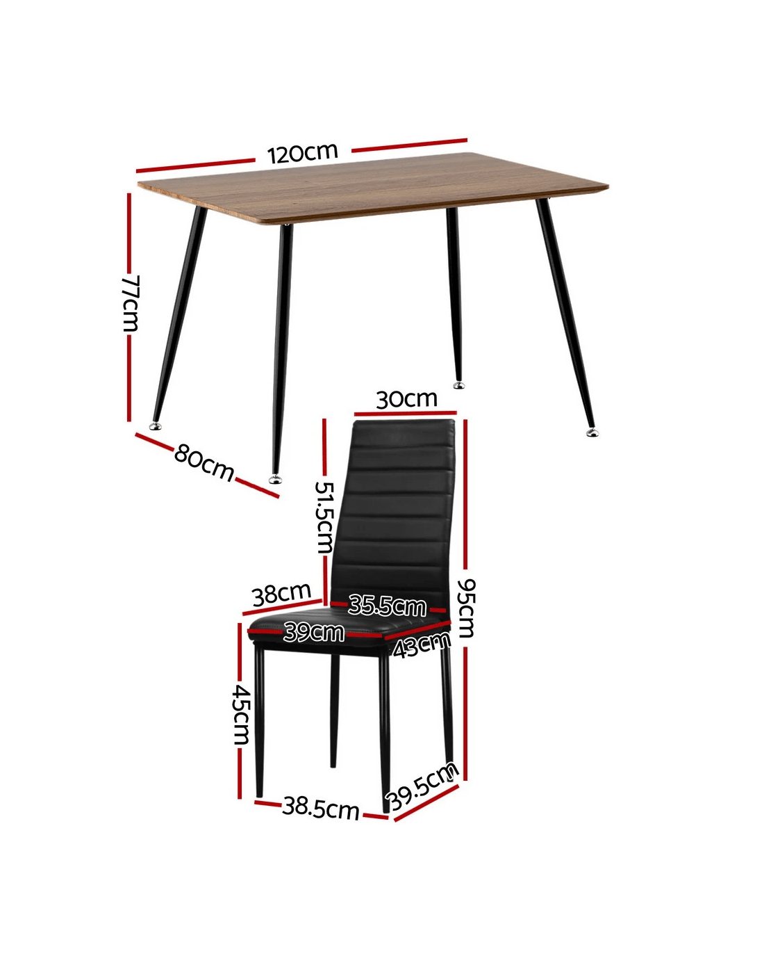 For a simple dining table that still delivers on style, the Artiss Caleb Dining Table is right for you. Made from thick particle board with a natural wood grain finish, the table is exceptionally affordable, durable, and will blend in perfectly with your existing décor. The dark wood tabletop is set atop solid powder-coated, anti-rust steel legs for an industrial-style look and feel. The table is scratch resistant and easy to clean and maintain thanks to the smooth, long-lasting surface.