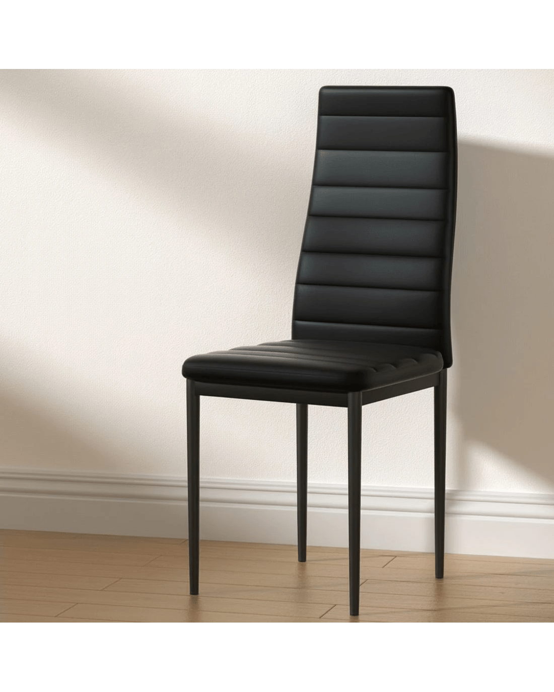 The tall backrest is more than just a distinguish design albeit its matt finish PVC upholstery, together with the seat, clearly score high on the craftsmanship stakes. It also provides a good back support with the well-padded waterproof seat to ensure that every diner enjoys their delightful meal as they do with their comfortable seating.