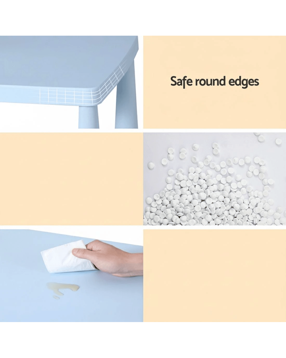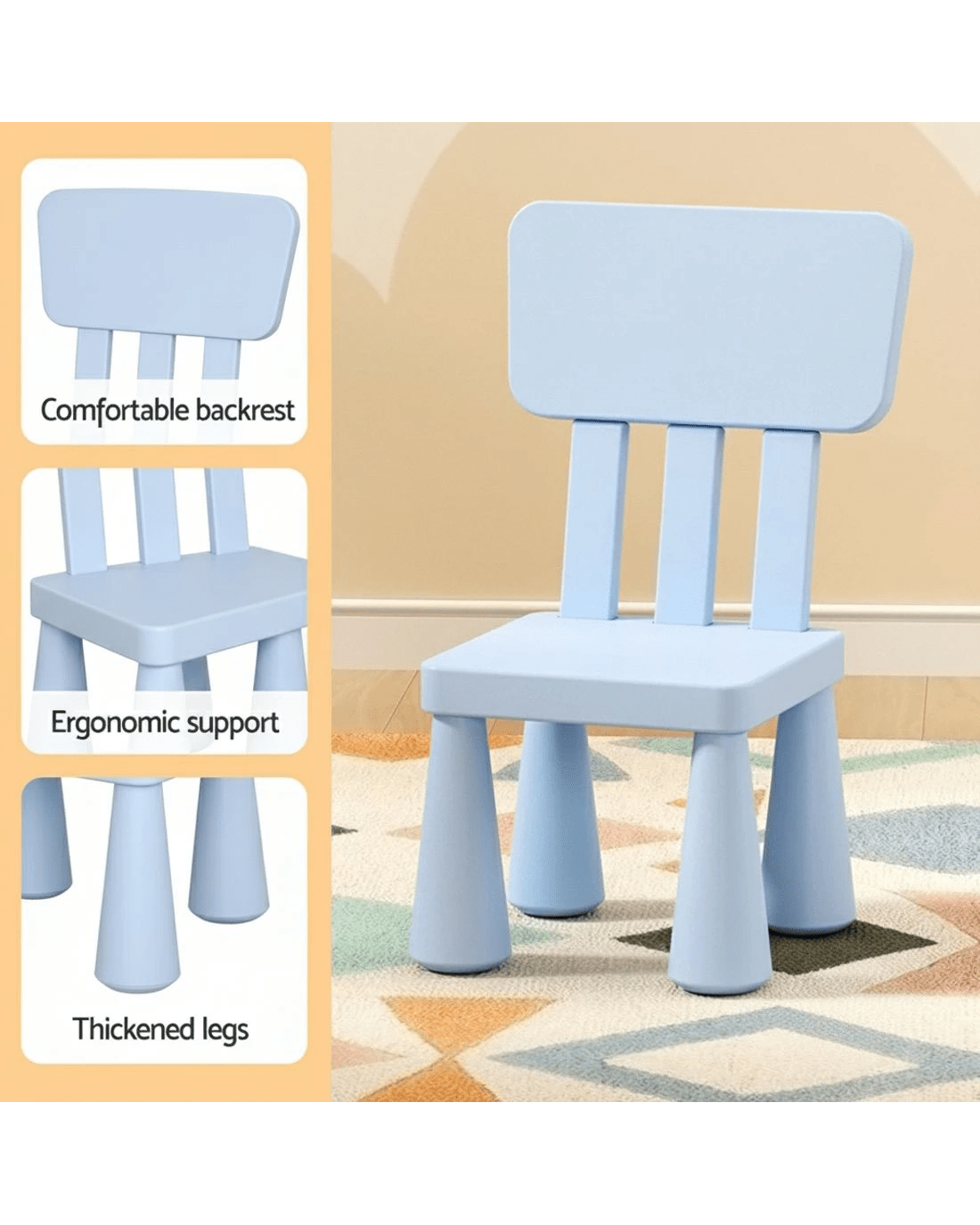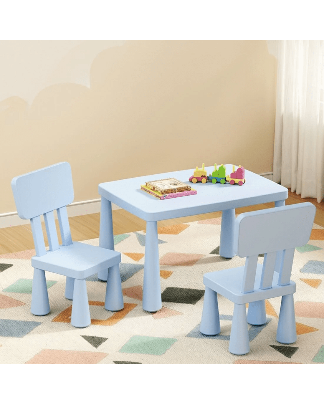 Make playtime or study time more enjoyable with the Keezi Kids Table and Chairs Set. Designed in fun blue and pink colours, this set includes one table and two matching chairs, perfect for children aged three years and above. Made from non-toxic PP material, the table and chairs are both durable and practical, ensuring long-lasting use. The smooth edges ensure safety, while the sturdy construction provides stability for various activities. Easy to assemble and simple to maintain, this set is the ideal addition to any child's room or play area.