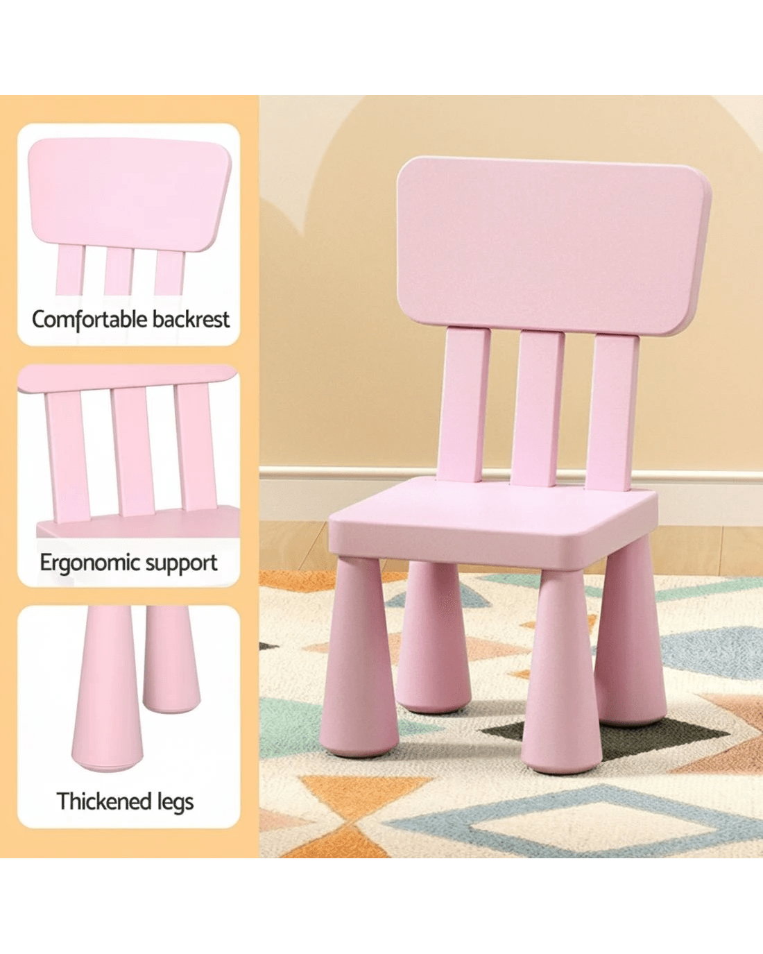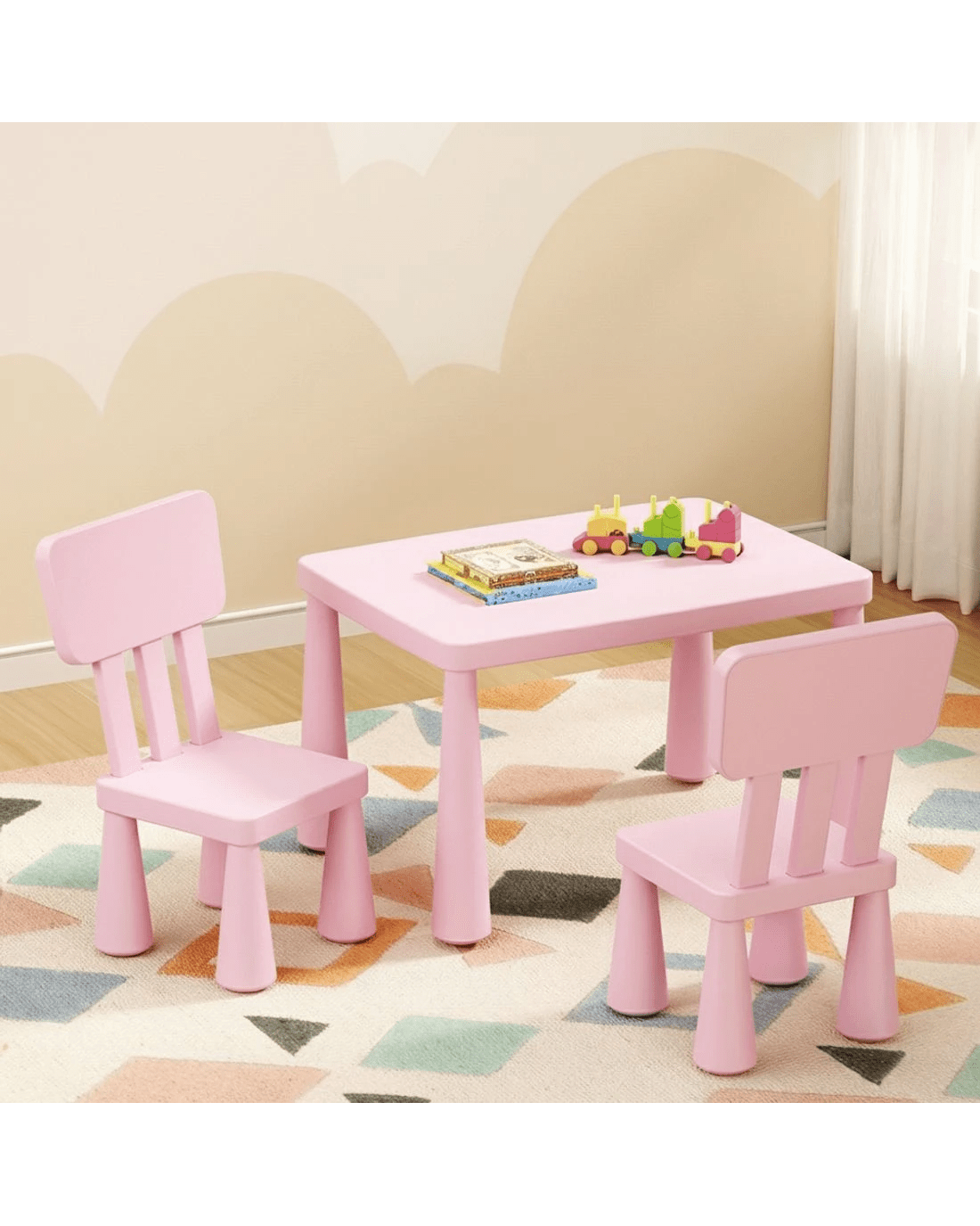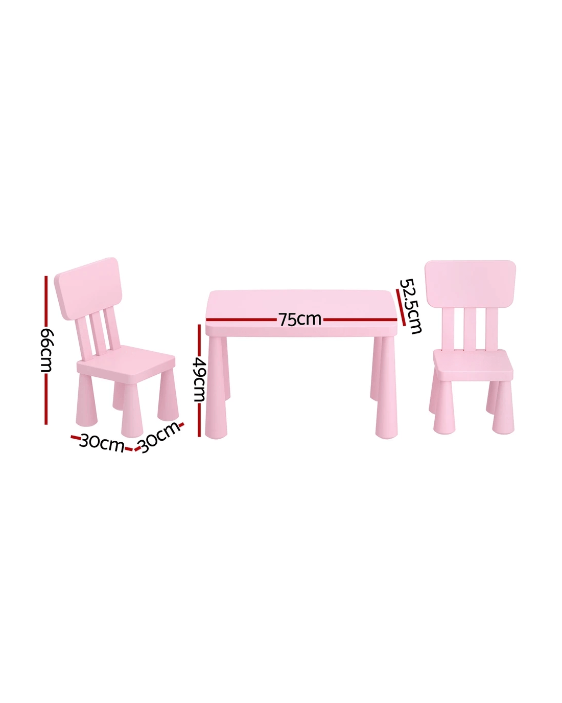 Make playtime or study time more enjoyable with the Keezi Kids Table and Chairs Set. Designed in fun blue and pink colours, this set includes one table and two matching chairs, perfect for children aged three years and above. Made from non-toxic PP material, the table and chairs are both durable and practical, ensuring long-lasting use. The smooth edges ensure safety, while the sturdy construction provides stability for various activities. Easy to assemble and simple to maintain, this set is the ideal addition to any child's room or play area.