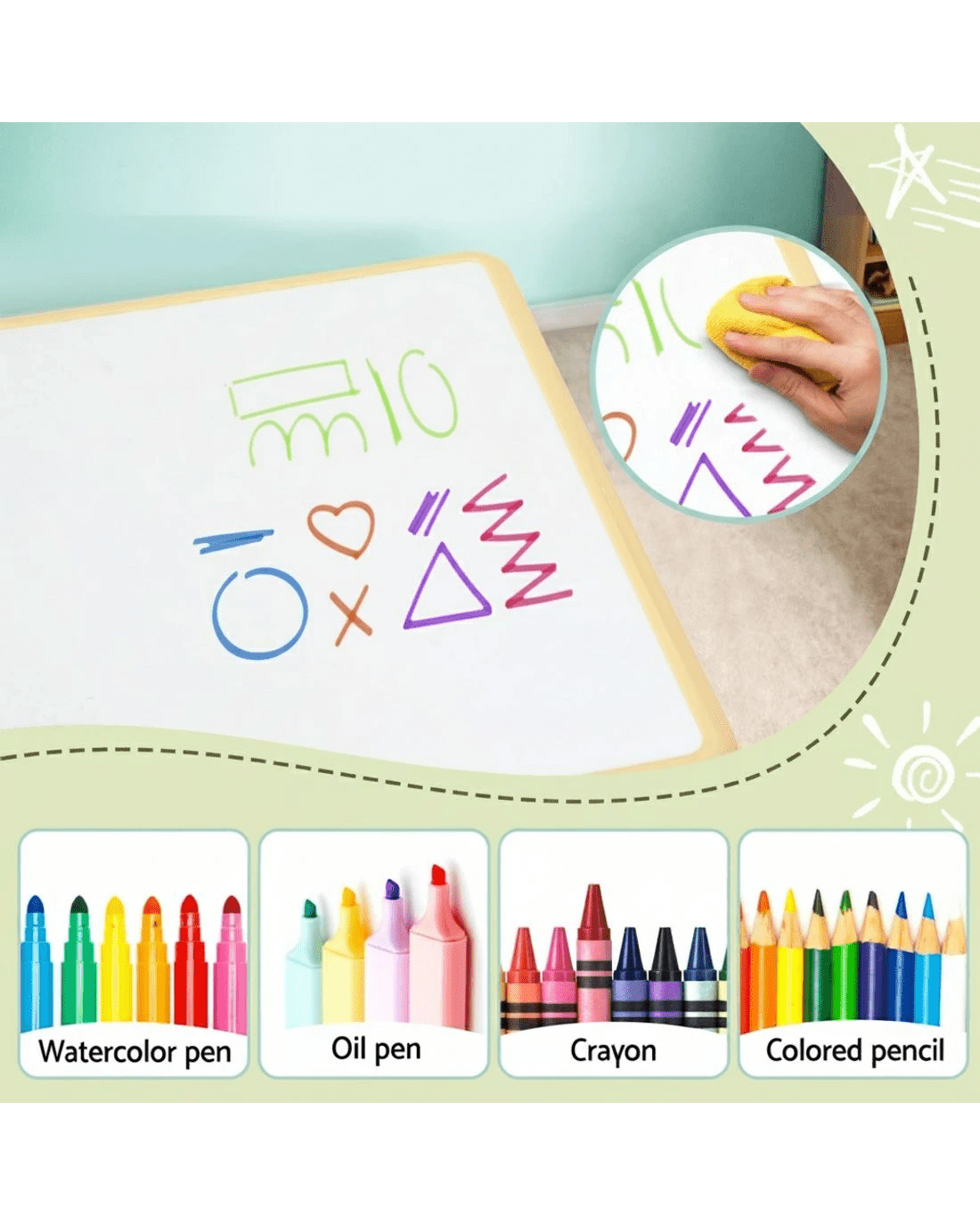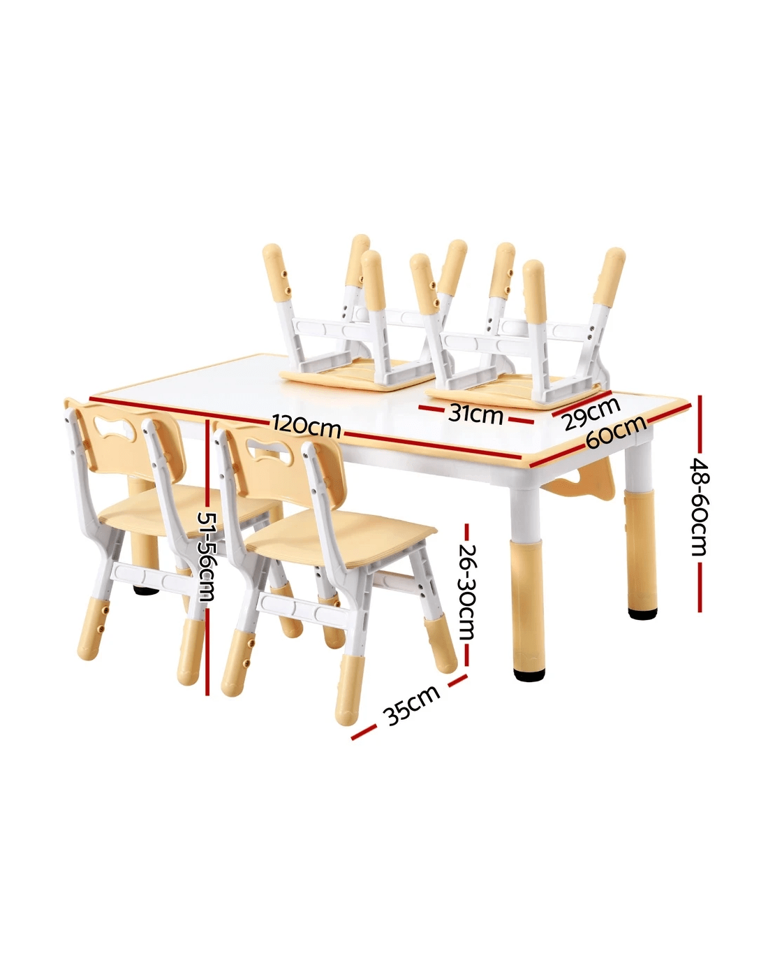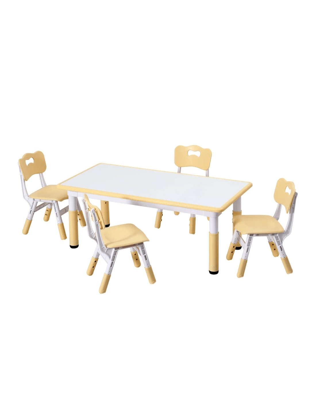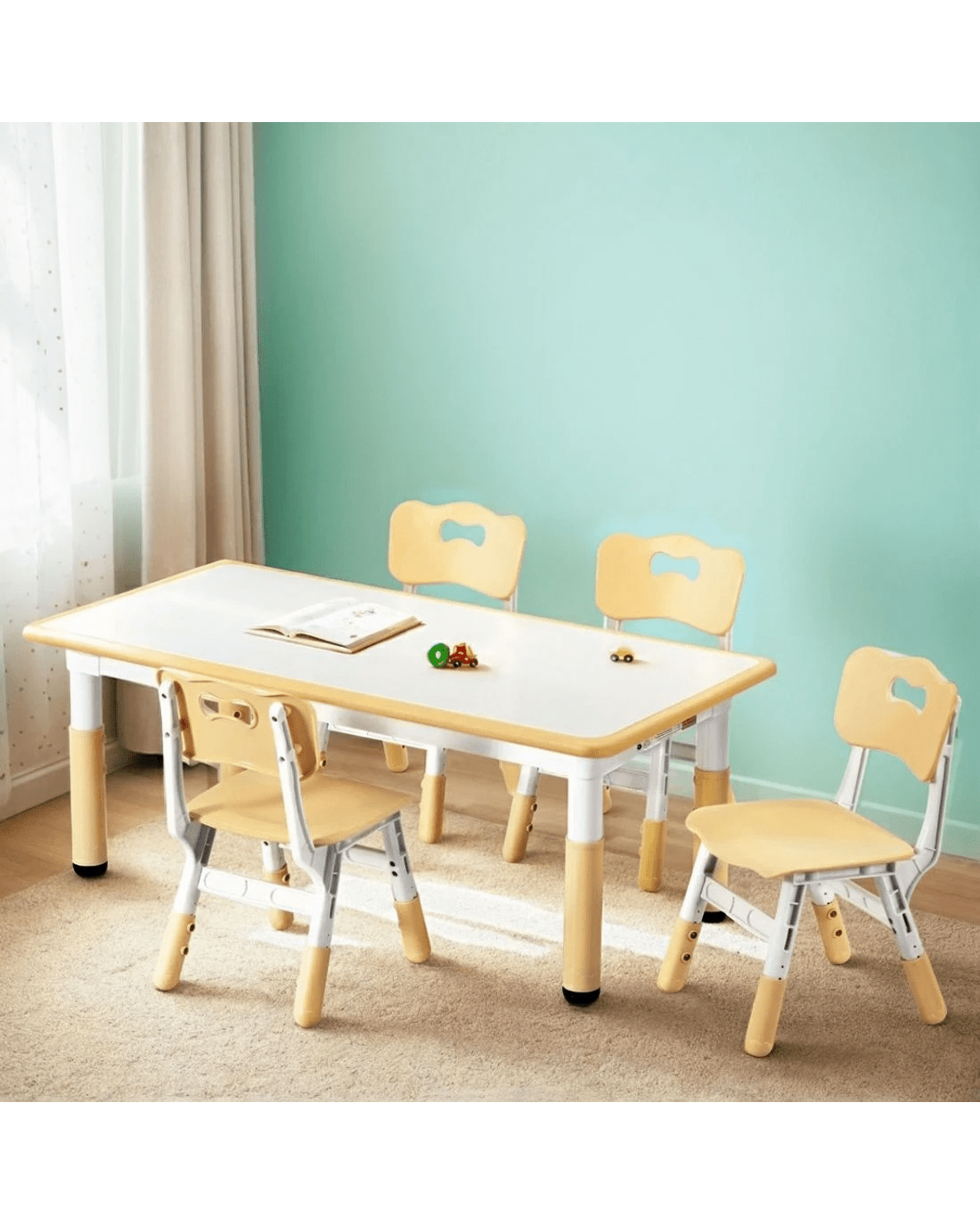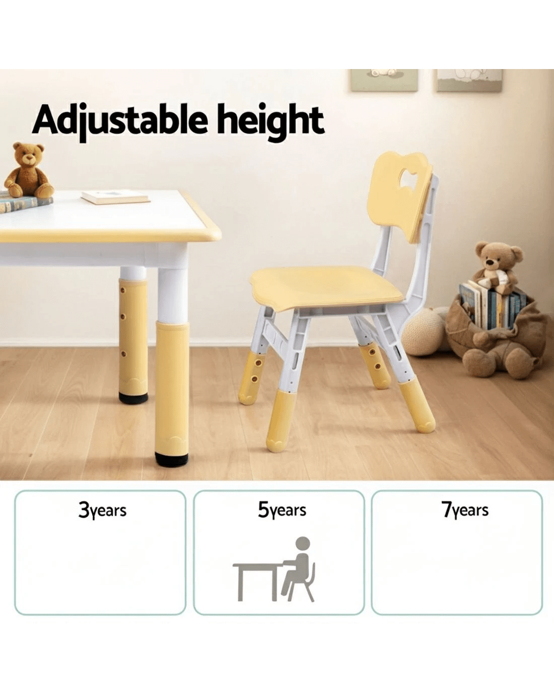 Make learning and playtime more fun with the Keezi Kids Table and 4 Chairs Set, a versatile and child-friendly addition to any playroom, classroom, or activity space. Designed with a draw-on tabletop, kids can unleash their creativity while enjoying arts, crafts, and learning activities. The height-adjustable design ensures the perfect fit as your child grows, while the non-toxic PP material and smooth rounded edges ensure its safe surface for everyday use.
