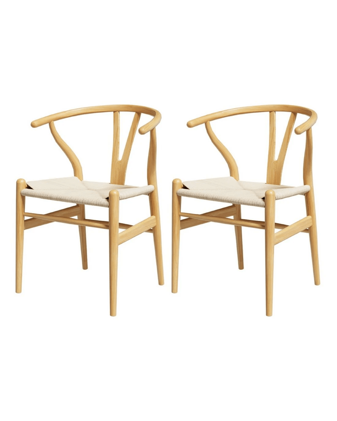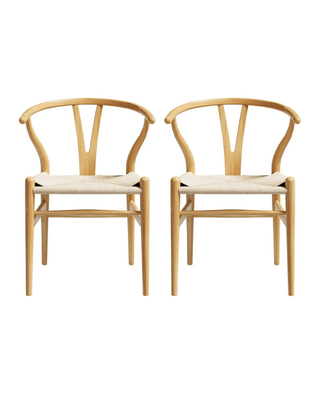1 Set of 2 Artiss Dining Chairs Wooden Rattan Seat Wishbone - Natural