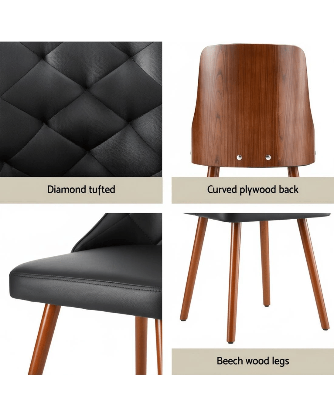 Material: PU cover, Plywood back, Beech wood legs