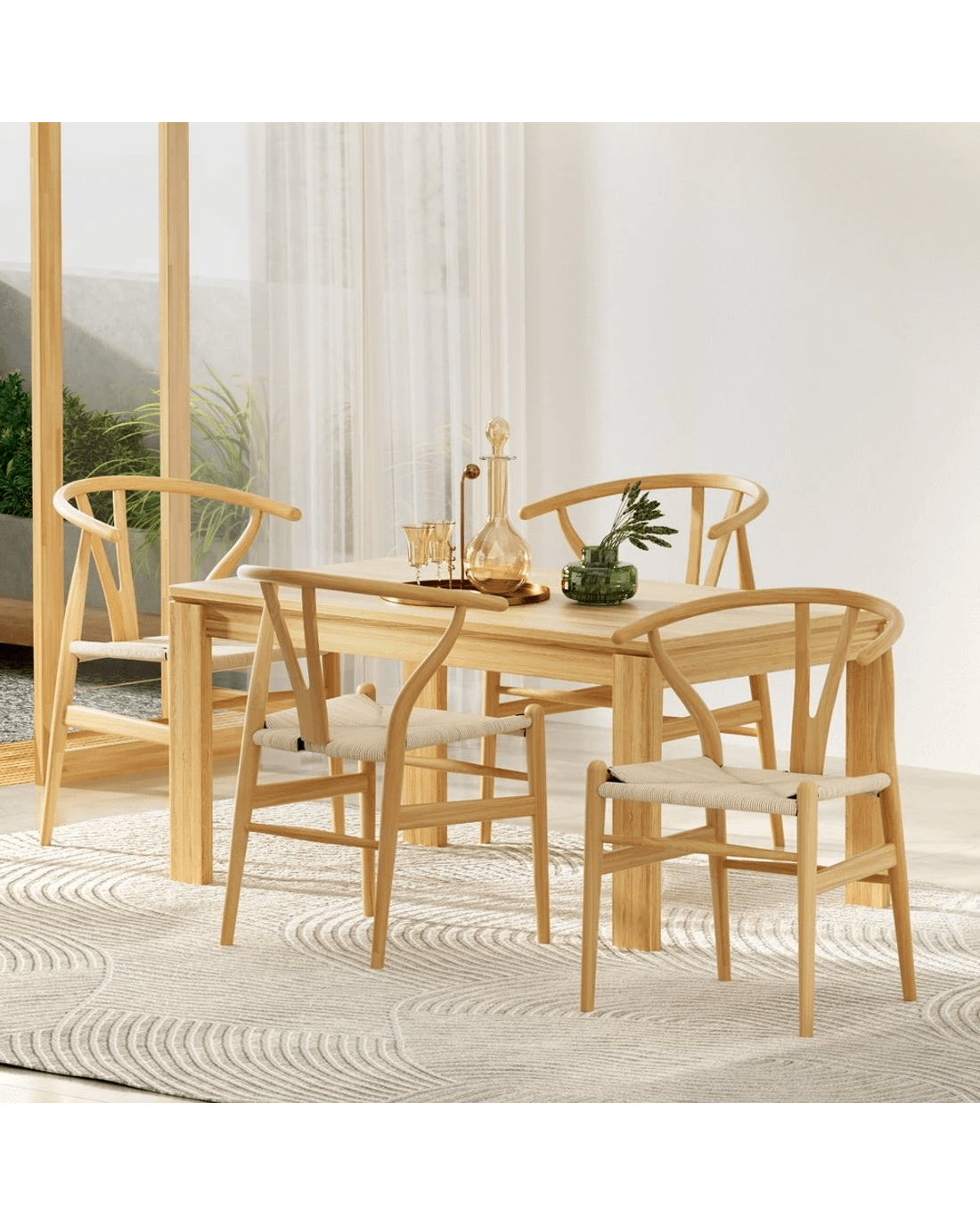 1 Set of 4 Artiss Dining Chairs Wooden Rattan Seat Wishbone - Natural