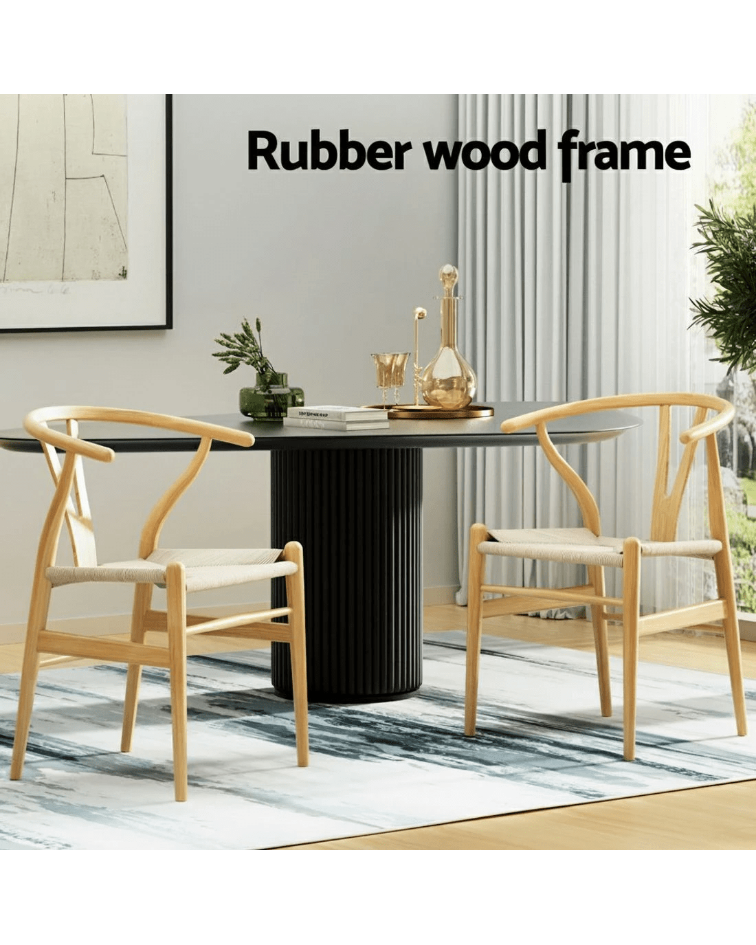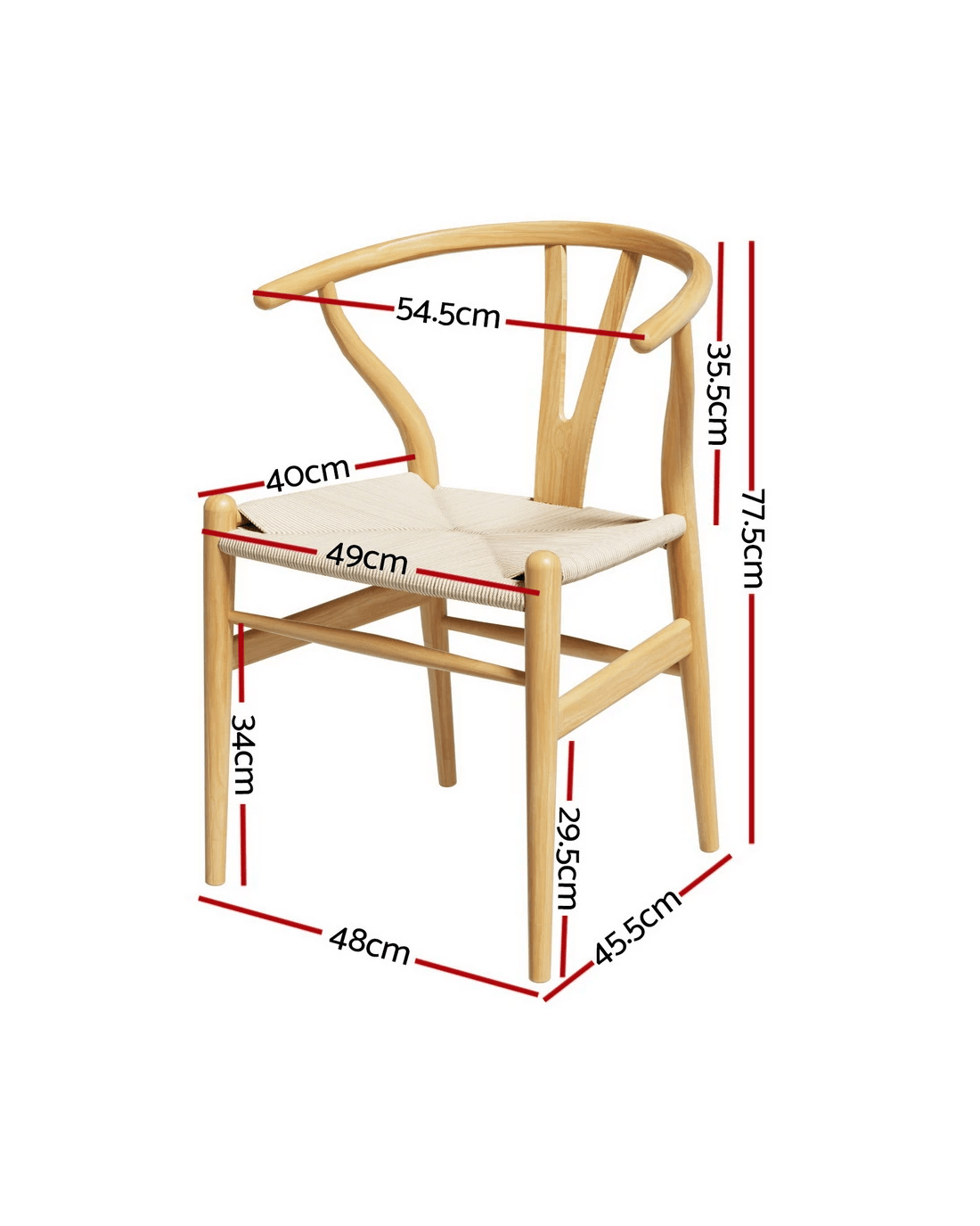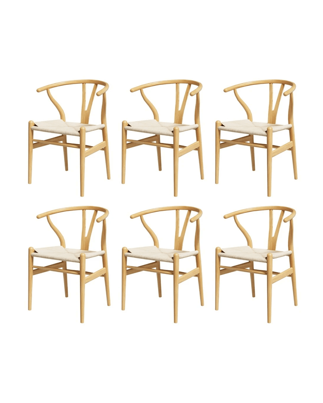 1 Set of 6 Artiss Dining Chairs Wooden Rattan Seat Wishbone Back - Brown