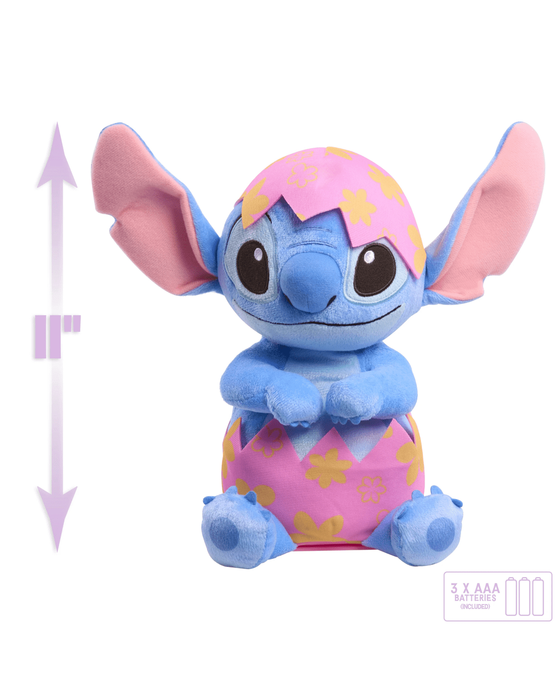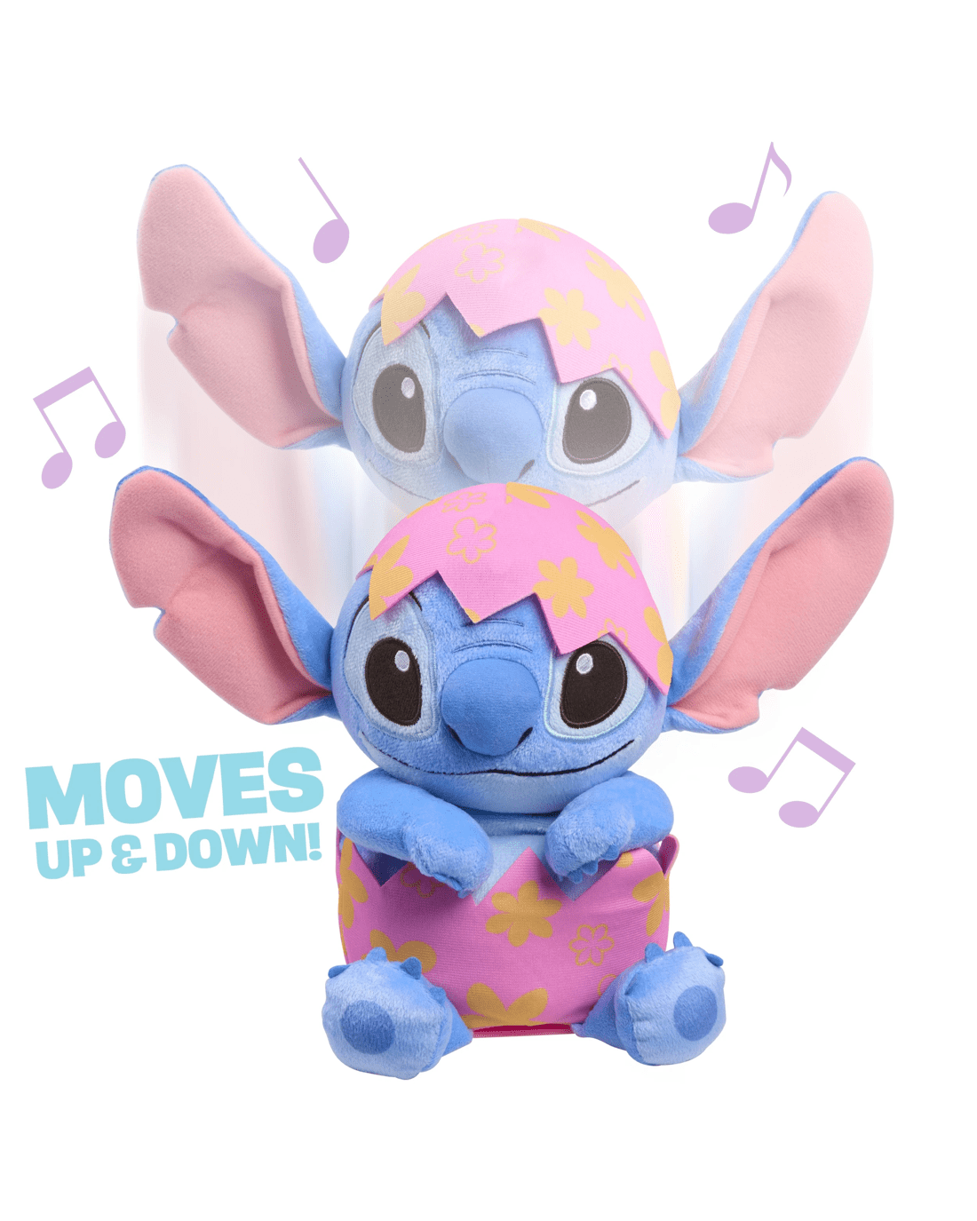 - Seasonal Delight: Set the scene for an eggs-traordinary holiday with this Disney Stitch Easter plush toy. Fans of all ages will be delighted as Stitch pops in and out of a cuddly, musical Easter egg.