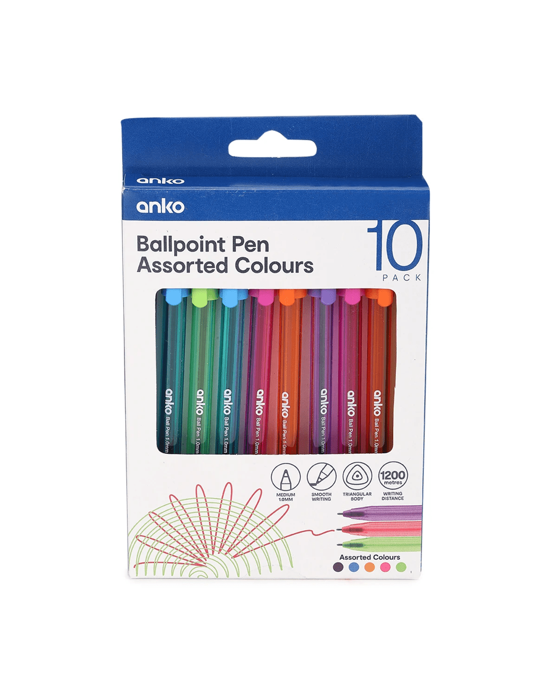 Sold by Kmart10 Pack Assorted Colours Ballpoint Pens