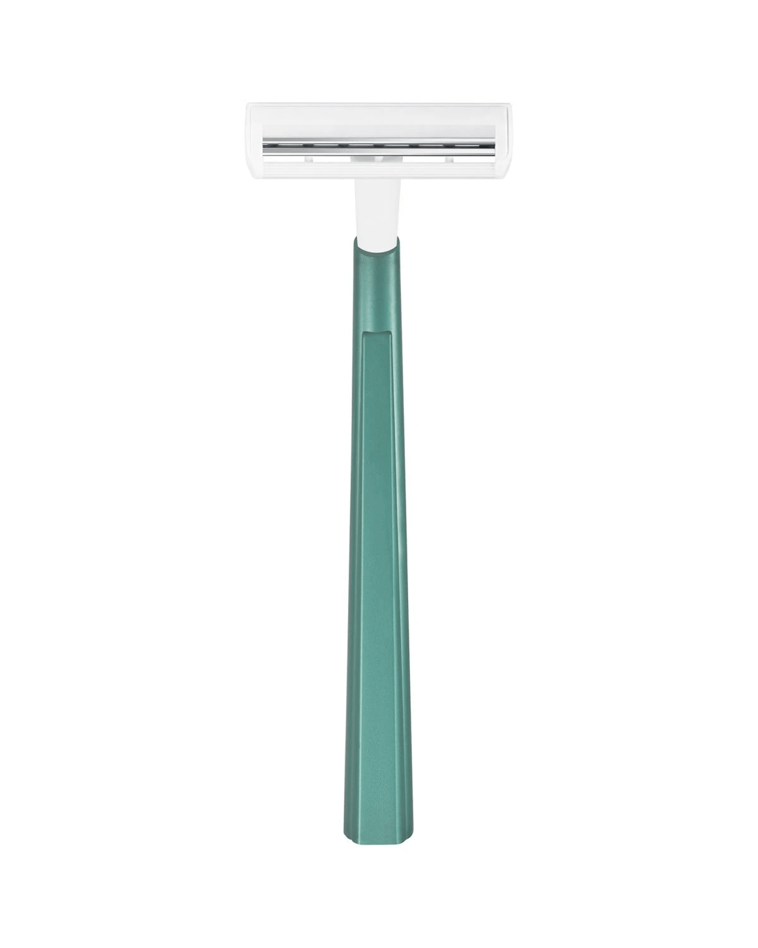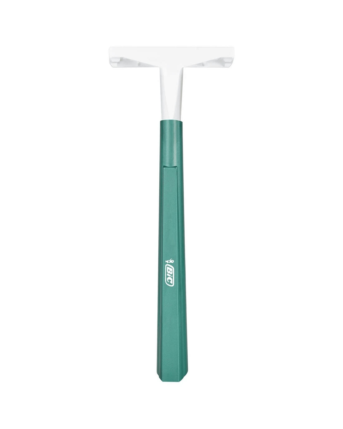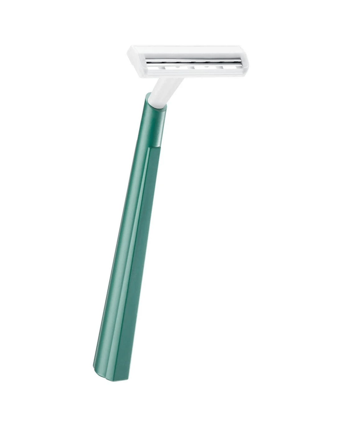 As the name says, the BIC Comfort twin-blade disposable men’s razor delivers comfort and smoothness thanks to a wide easy-glide lubricating strip enriched with Vitamins A and E and Aloe Vera. With a fixed non-pivoting head that’s also slim, this two-blade razor gives you great control for eliminating stubble in hard-to-reach areas. The green polystyrene handle is designed to prevent slip-ups.