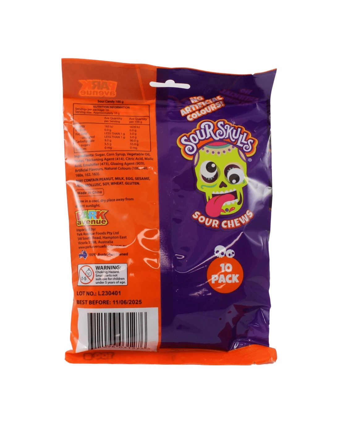 Sold by Kmart10 Pack Park Avenue Sour Skulls Sour Chews 100g