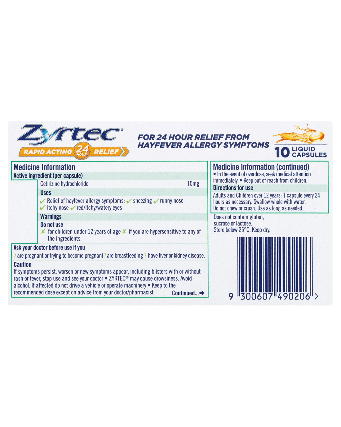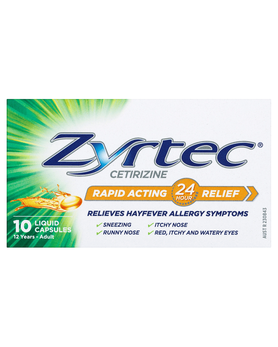 Sold by Kmart10 Pack Zyrtec Rapid Acting Hayfever Allergy Relief Antihistamine Liquid Capsules