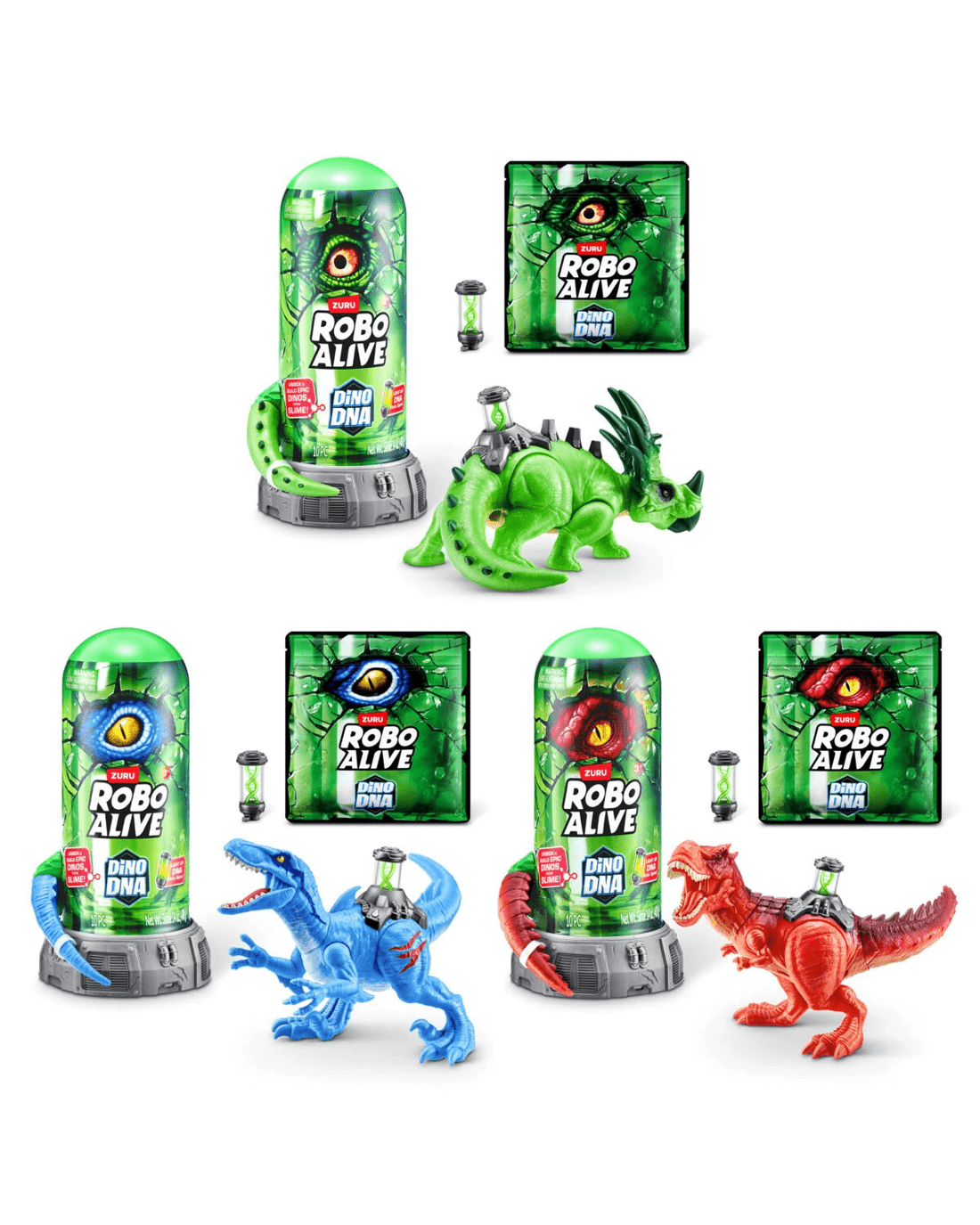 Sold by Kmart10 Piece ZURU Robo Alive Dino DNA Light Up Helix Spine! - Assorted