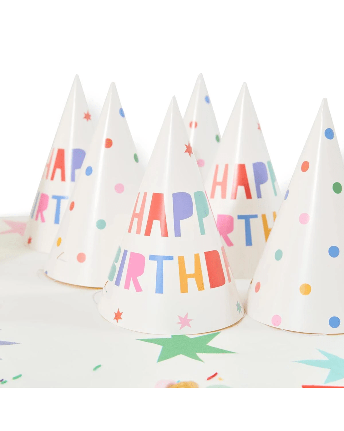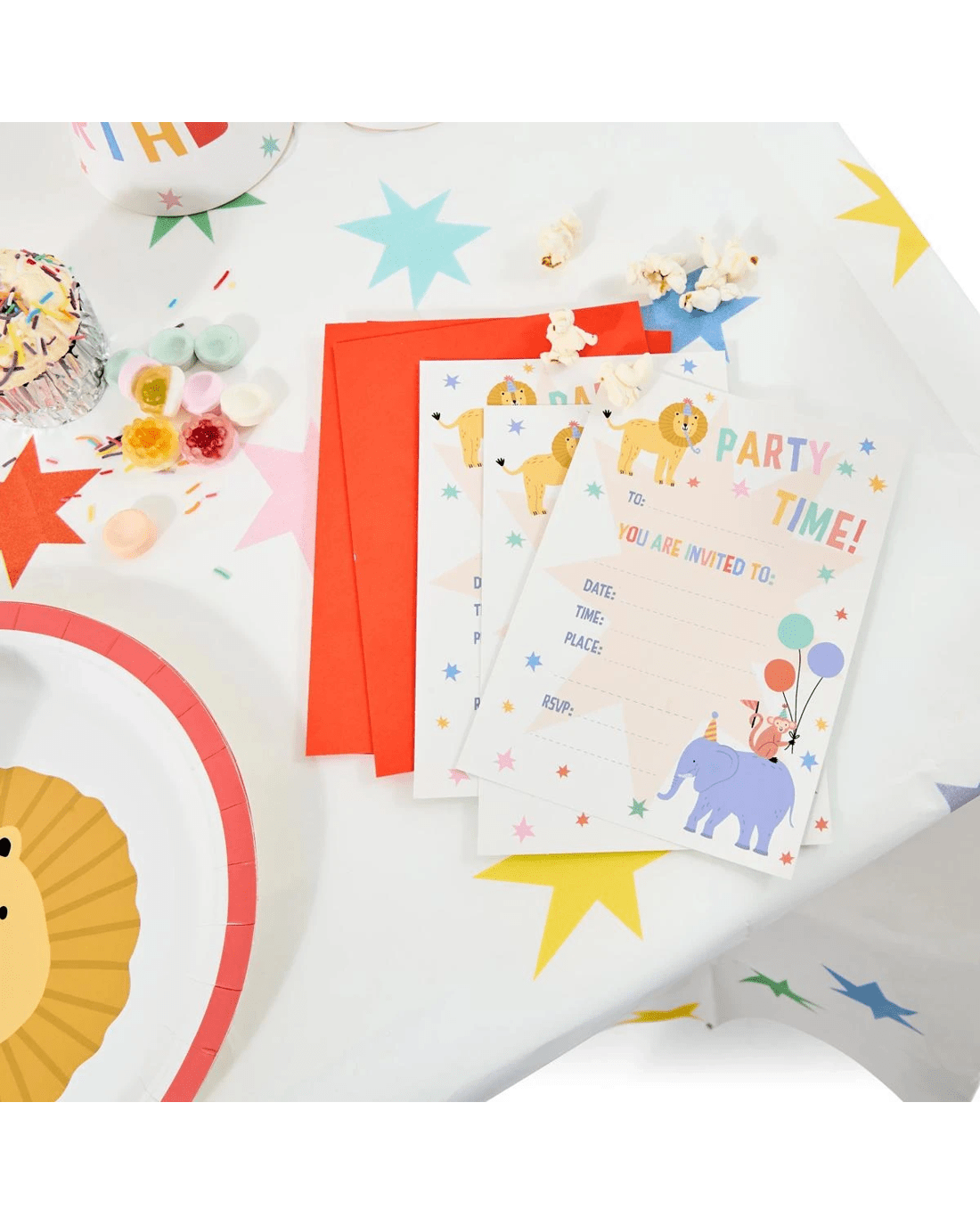• Includes 16 x paper plates, 16 x paper cups, 18 x napkins, 16 x loot bags, 16 x invitations, 16 x party hats, 1 x bunting and 1 x table cover