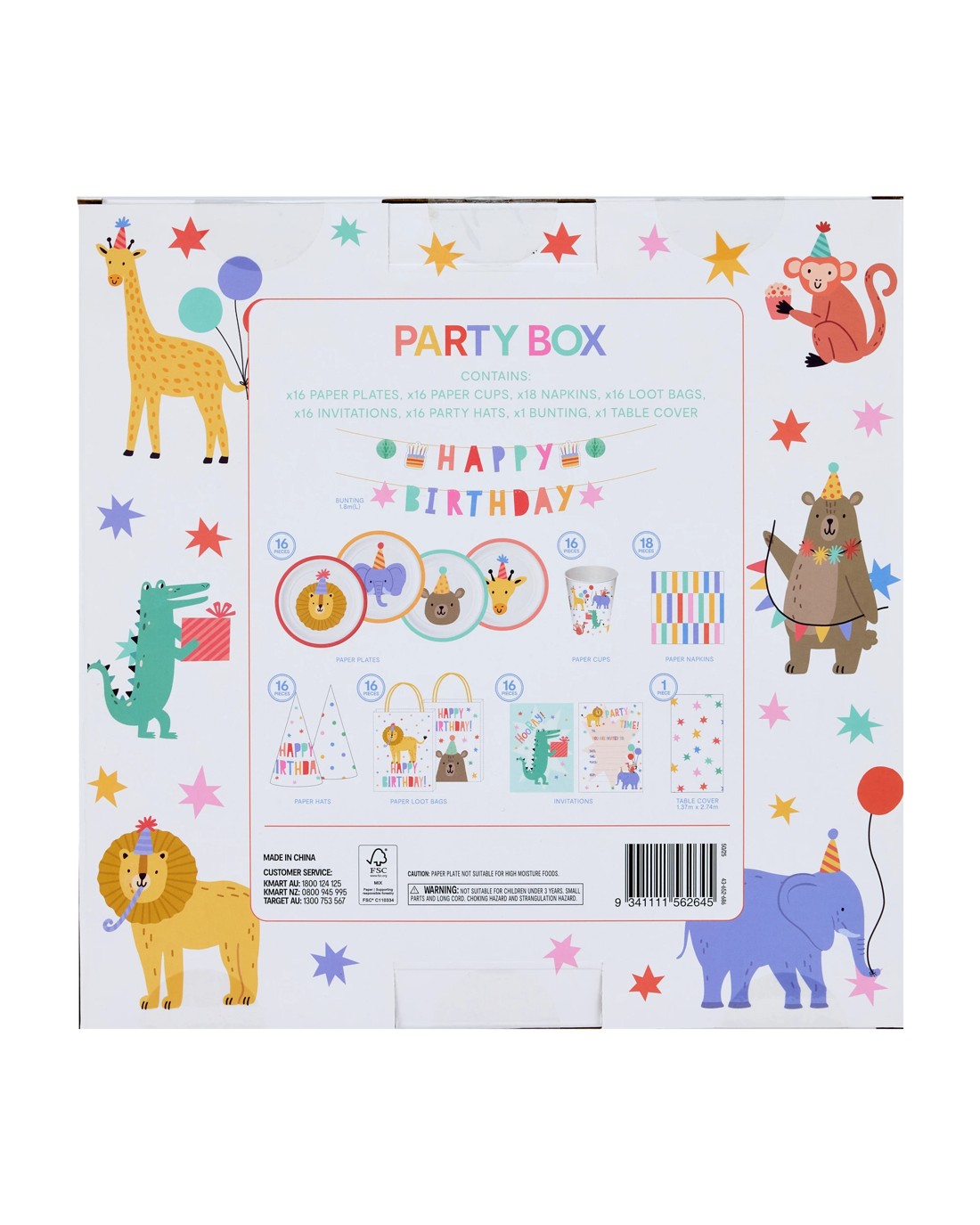 Roar, stomp and have a wild time! The 100 Piece Animal Party Box is packed with fun decorations, tableware and party extras perfect for little animal lovers. Ideal for birthdays, playdates or family celebrations, it brings a playful safari vibe to every event.