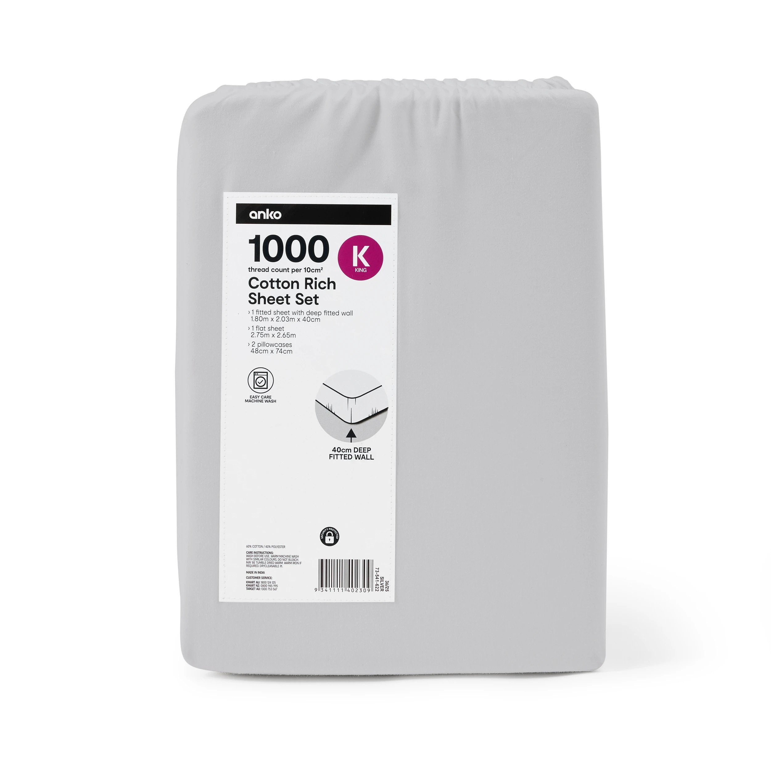 Sold by Kmart1000 Thread Count Cotton Rich Sheet Set - King Bed, Silver