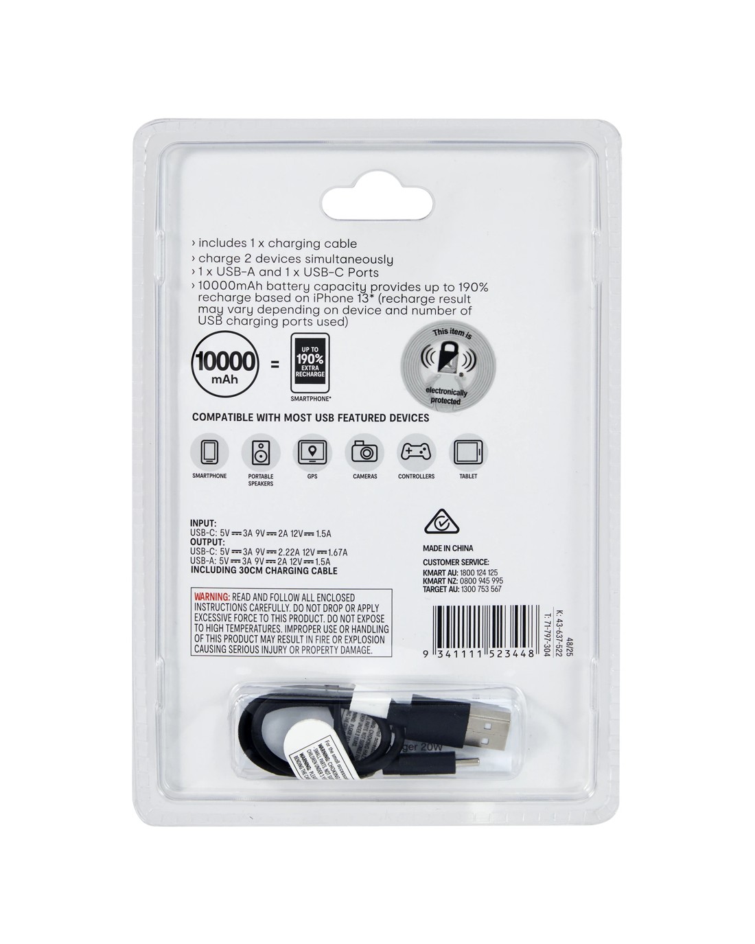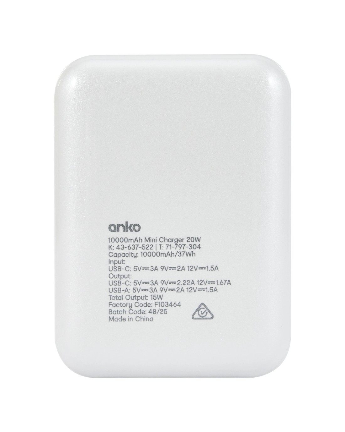 - Capacity: 10,000mAh battery capacity/20W