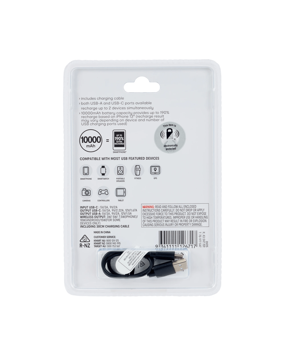 - Both USB-A and USB-C ports available recharge of up to two devices simultaneously