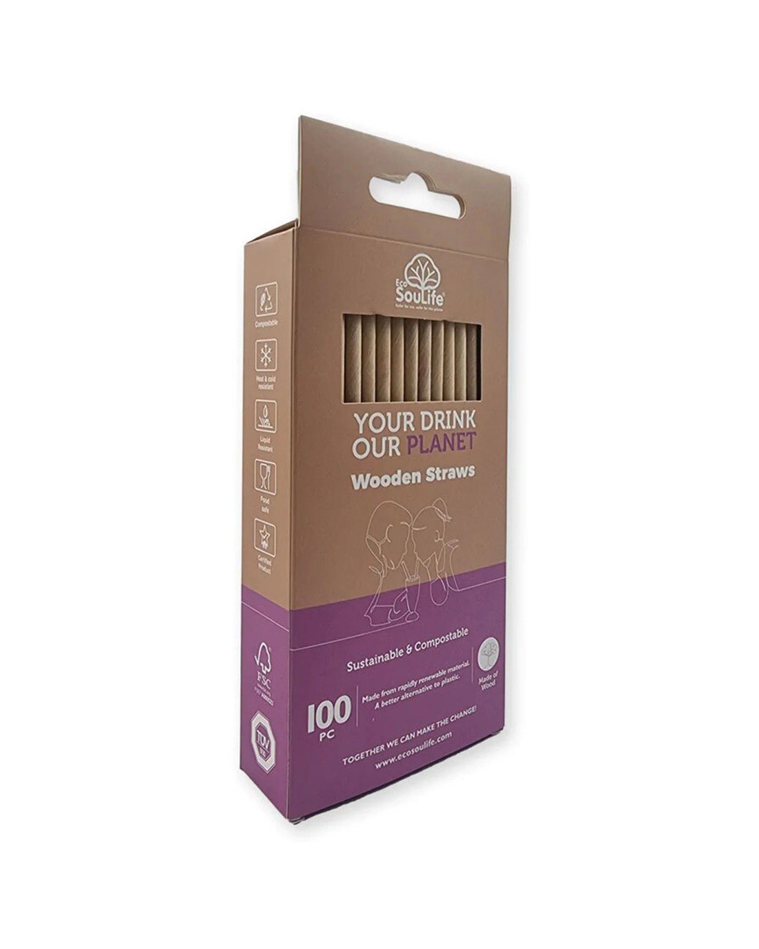 Sold by KG SuperStore100pc Eco Soulife Disposable/compostable Biodegradable Wooden Drinking Straws - Natural