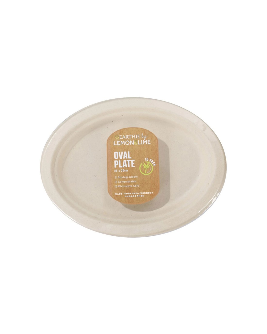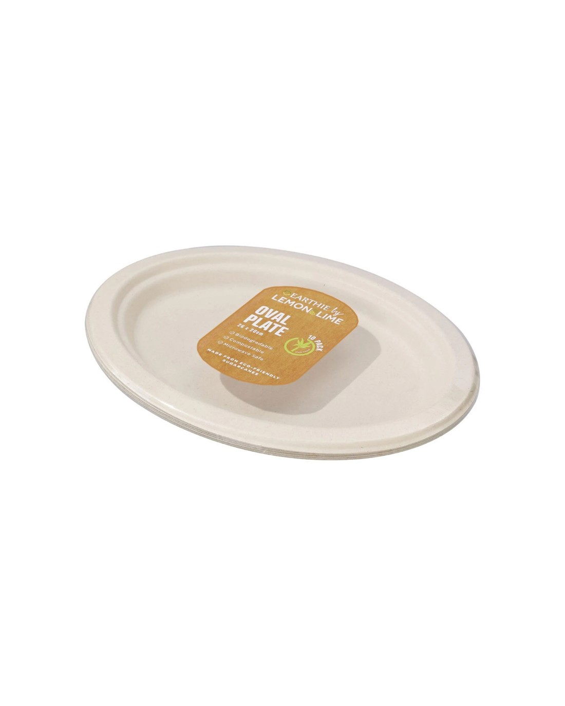 Sold by KG SuperStore10pc Lemon & Lime Eco-friendly/biodegradable Disposable 26cm Oval Plate Natural - Natural