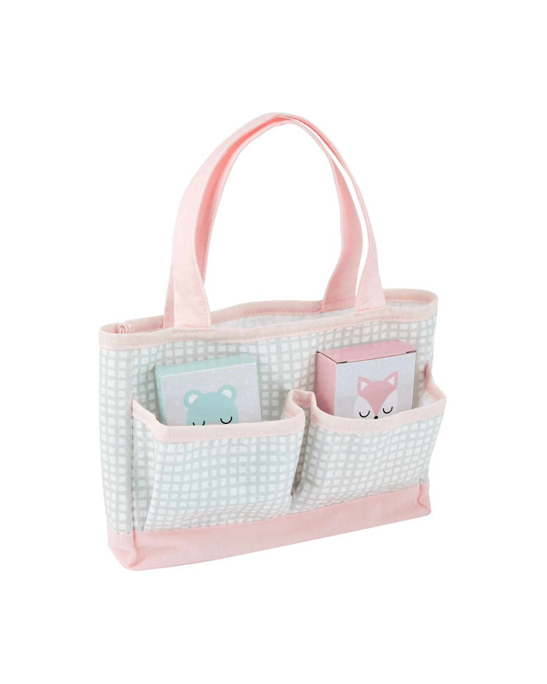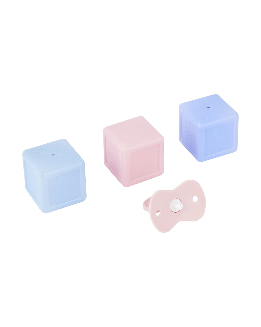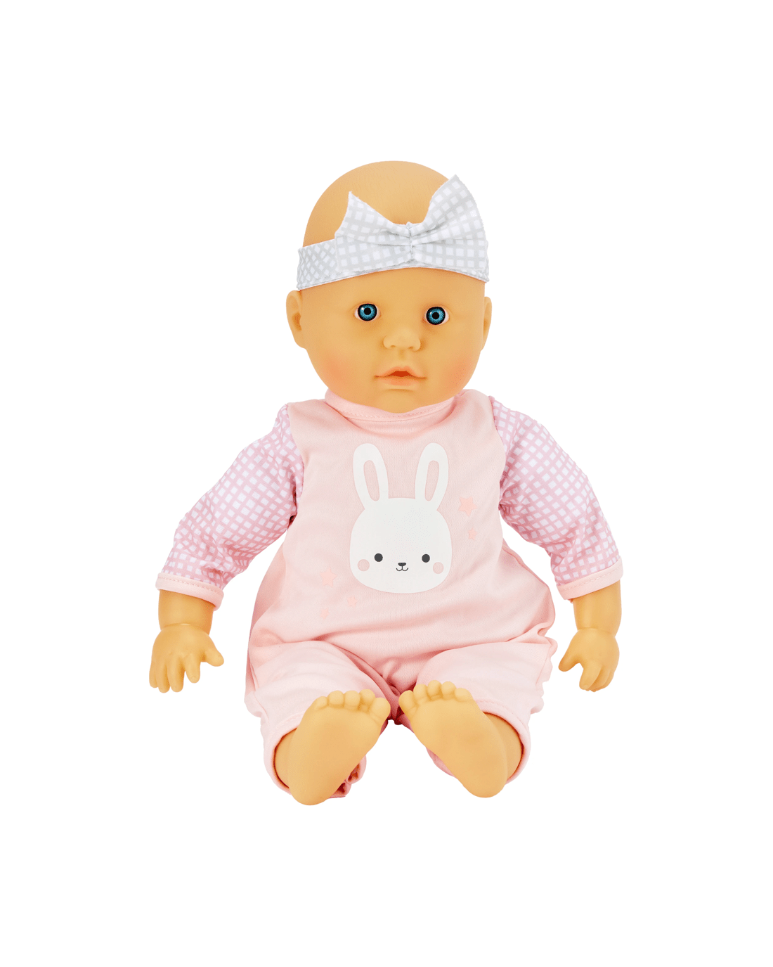 - Includes 1 x doll, 1 x dummy, 1 x milk bottle, 1 x rattle, 1 x baby powder bottle, 1 x carry bag, 2 x paper boxes and 3 x blocks