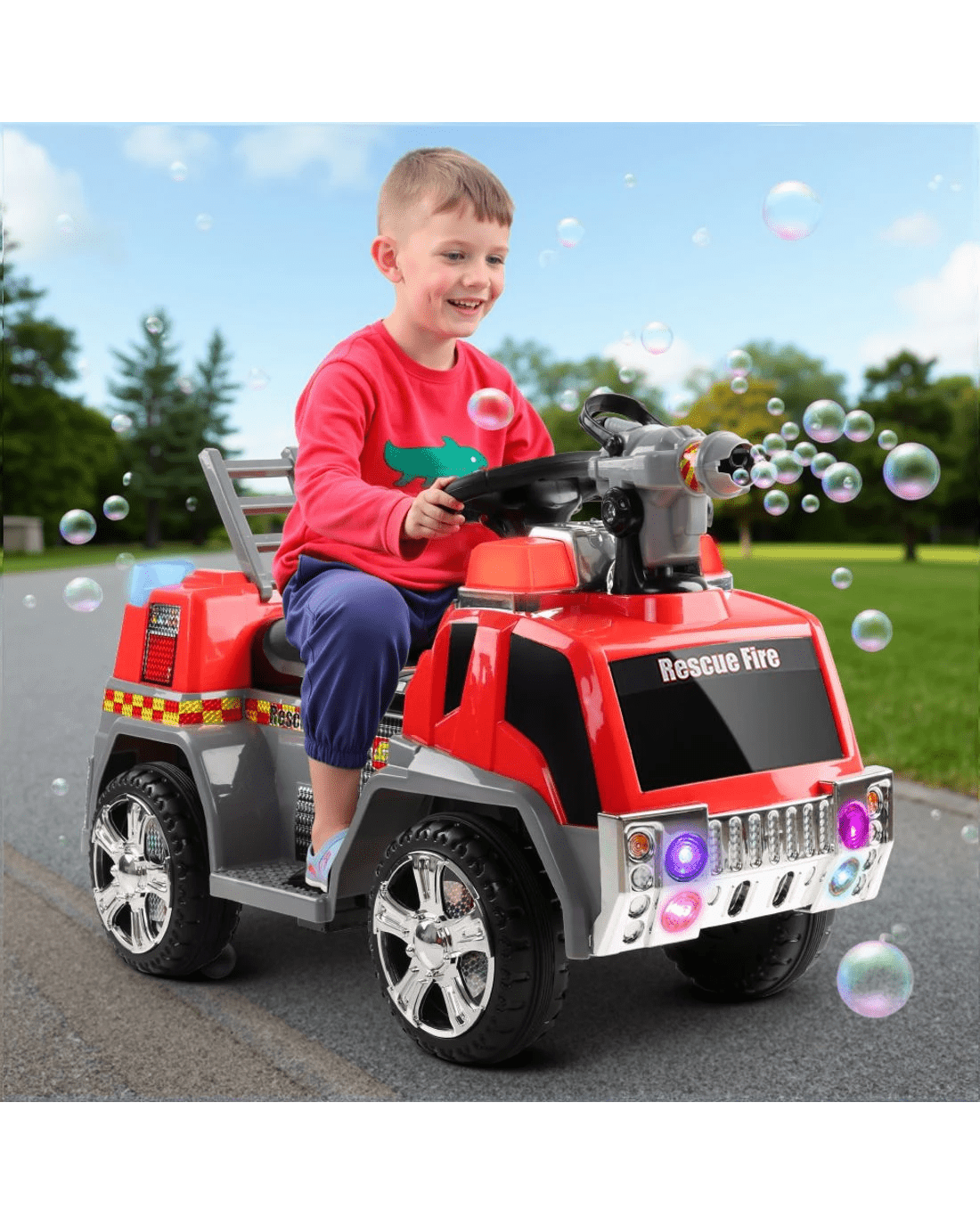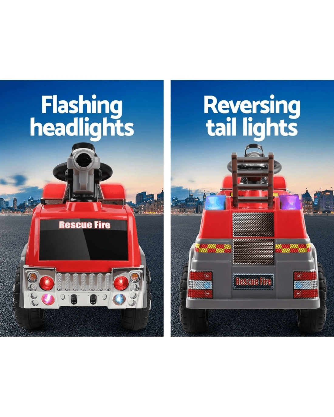 Let your little one experience the excitement of being a firefighter. The steering wheel and acceleration pedals to control the forward and reverse movement give your child control and a realistic driving experience. It comes with some cool entertaining features that will allow your child to have hours of fun. The anti-slp seat also ensures safety while your children are exploring the area in a fun way. Get the Rigo Ride on fire truck today and watch your child's imagination run wild!