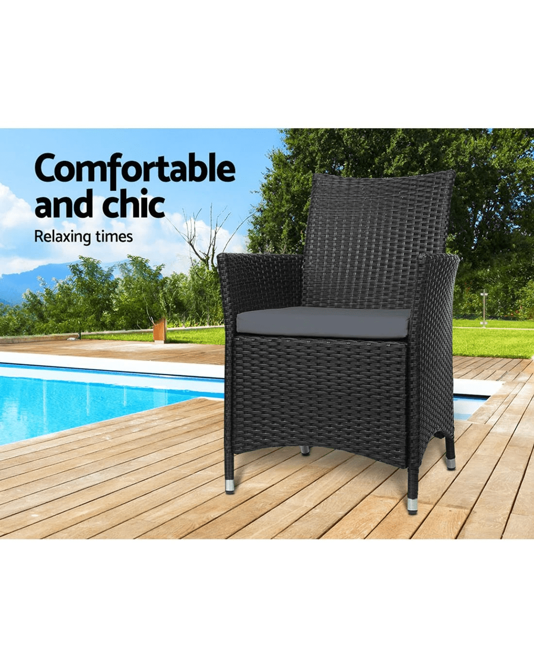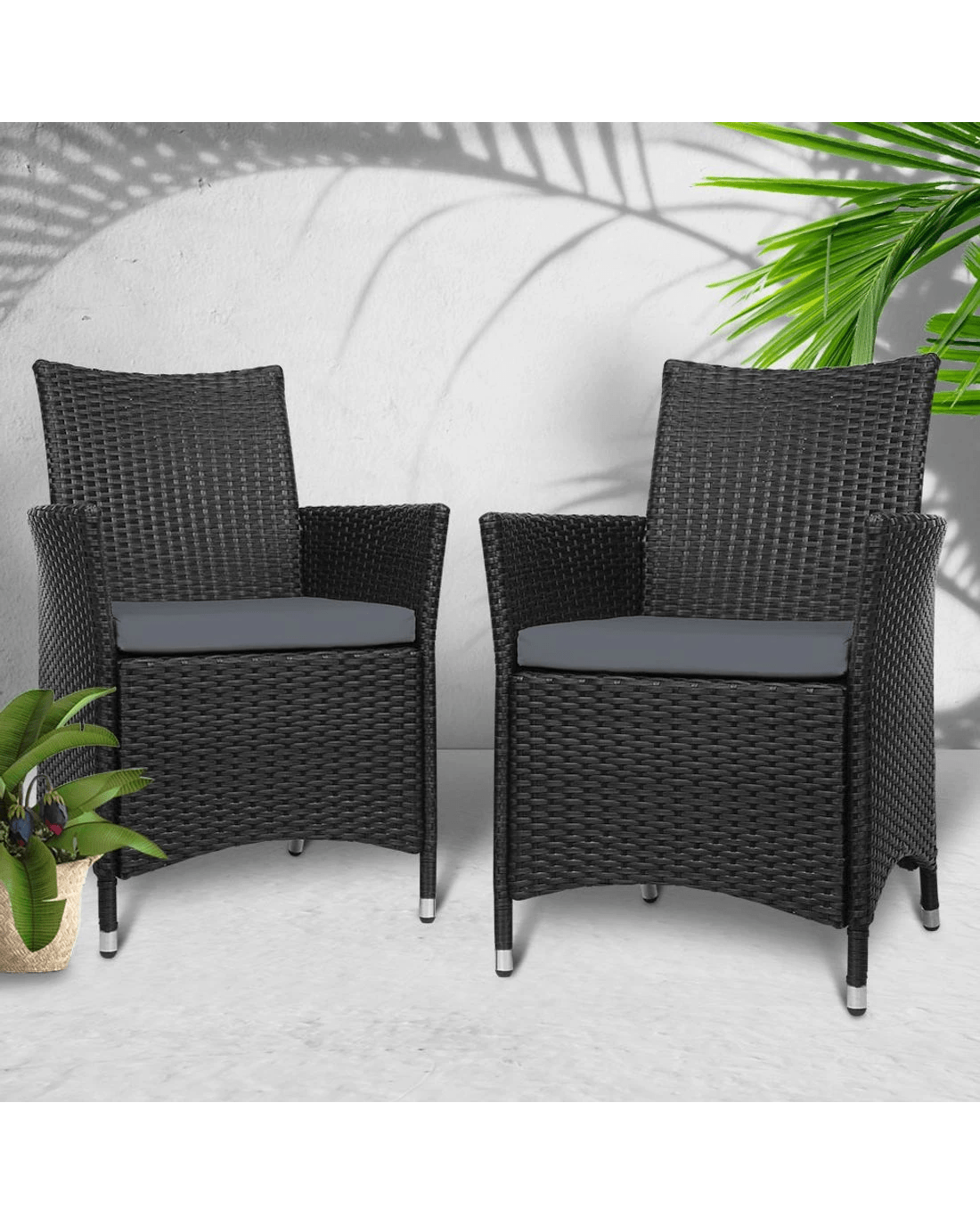 Sold by Aisle SixGardeon Outdoor Dining Chairs Patio Furniture Wicker Garden Cushion Idris 2pc Durable Space Saving Modern Decor - Black