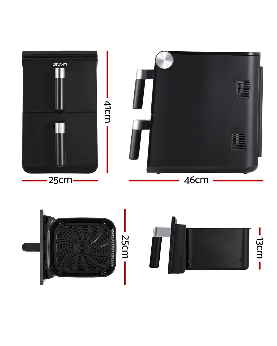 Sold by Aisle SixDevanti Air Fryer Oven 11L Dual Zone Fryers - Black